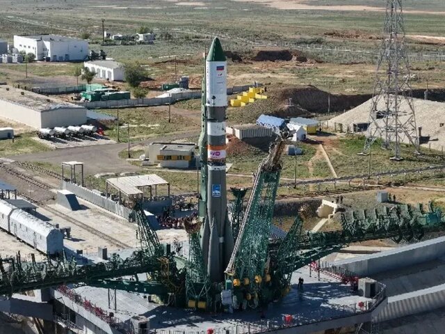 Ракета "Союз 2.1а" с кораблем "Прогресс МС-34" установлена на Байконуре Москва 24 23 апреля 2026 в 09:25 Ракету вывезли и установили в вертикальное положение на стартовом комплексе