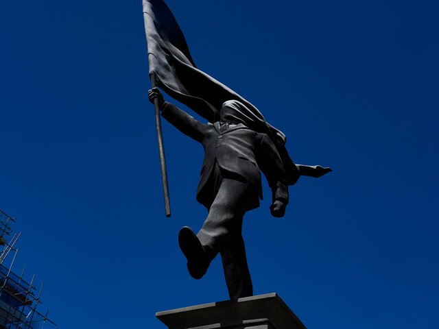 Новая скульптура с подписью Бэнкси появилась в Лондоне Москва 24 30 апреля 2026 в 16:20 Скульптура изображает мужчину в деловом костюме, который шагает к краю постамента